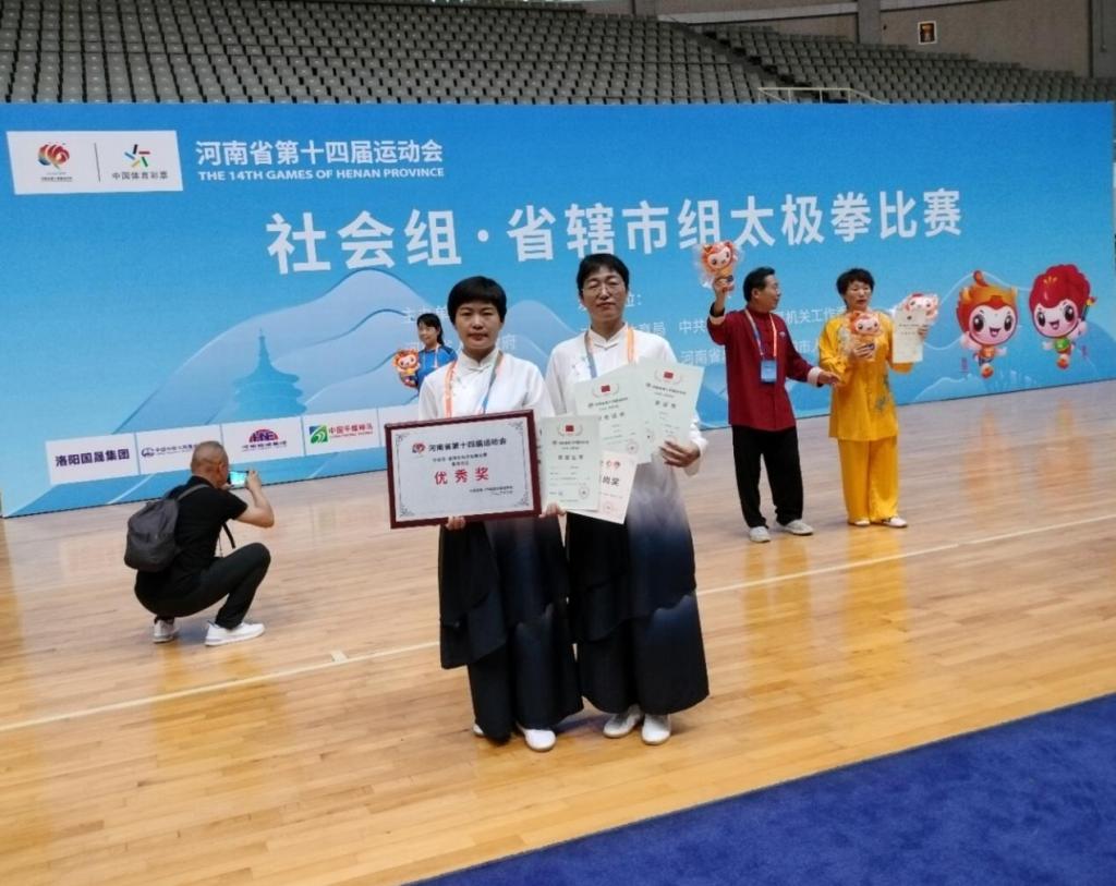 秦瑞瑞、夏璐两位教师和鹤壁市太极拳协会成员共同组成的16人代表队参加了本次比赛。经过比拼,在个人项目比赛中,秦瑞瑞获得传统陈式太极拳二等奖、传统太极短器械三等奖及体育道德风尚奖;夏璐获得传统陈式太极拳优秀奖、传统太极短器械优秀奖及体育道德风尚奖。